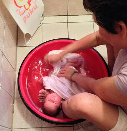 洗澡由婆婆操刀, 因為脖子軟軟的, 連換衣服都小心翼翼的,
